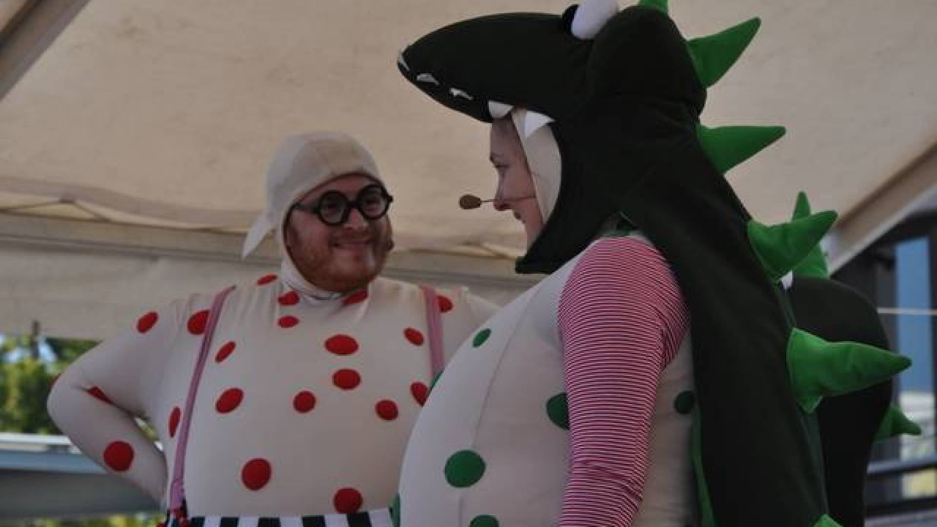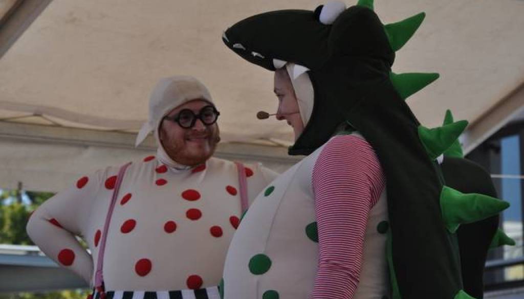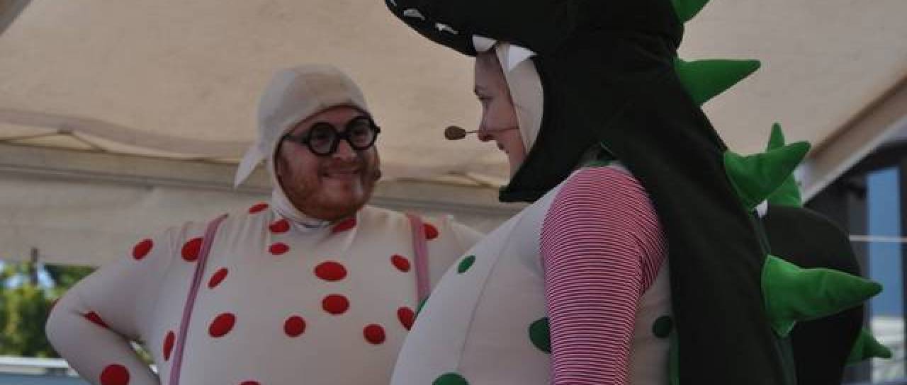 Glavko in Zbrk sta na Trgu kulture s svojo pripovedjo zgodbe o ne tako strašnem zmaju bila tako navihana, da sta nasmejala ne le najmlajše, ampak tudi starejše občinstvo.