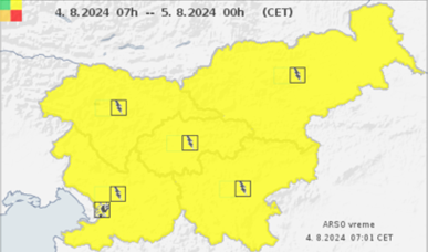 Arso je zaradi napovedanih neviht izdal rumeno opozorilo. Med 6. in 12. uro opozorilo velja v južnem delu države, popoldne in zvečer bo rumeno obarvana celotna država.