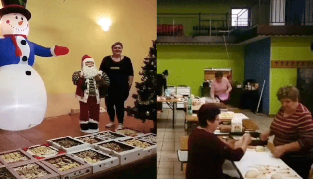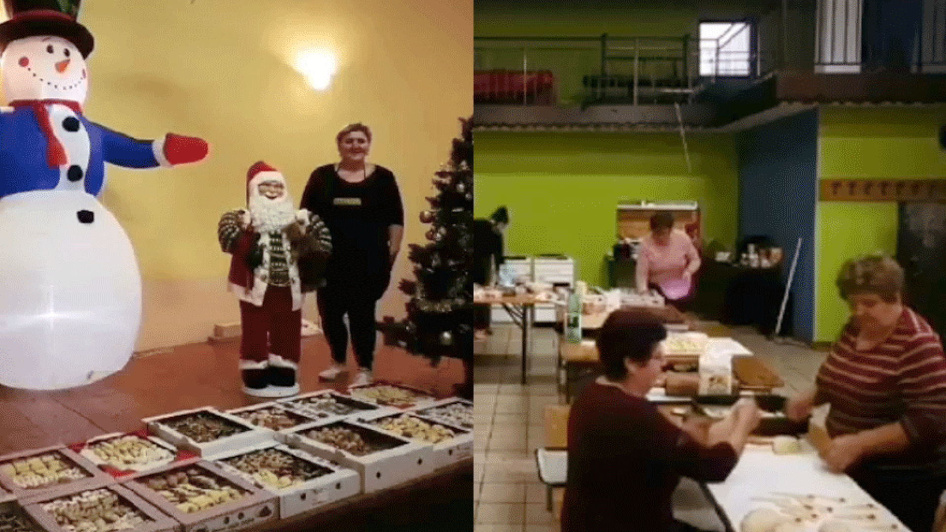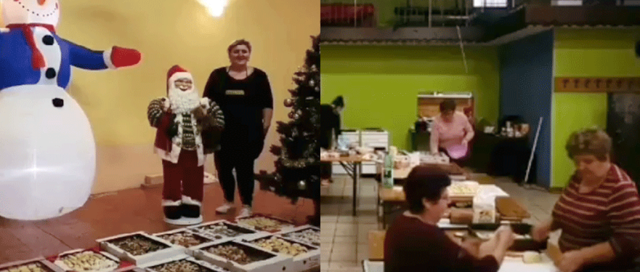 Ob domačih piškotih so v darilne vrečke sicer položili še čokoladice, plastenke vode, jogurte, paštete, mandarine, jabolka, pisala, vžigalnika, dišeče smrečice, bombone, arašide.