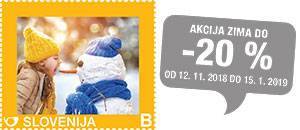 Svoje najbližje lahko presenetite tudi tako, da na voščila nalepite svoje osebne poštne znamke z zimskimi spomini. Izkoristite 20-odstotni popust na izdelavo osebnih poštnih znamk za pošiljanje po Sloveniji (A in B) ali 10-odstotni popust na izdelavo osebnih poštnih znamk za pošiljanje v tujino (C in D). Na spletni strani osebnaznamka.posta.si poiščite akcijo ZIMA, v polje Geslo vpišite besedo Zima, in z nekaj kliki oblikujte in naročite svoje osebne poštne znamke. Popust velja za spletna naročila in naročila, oddana po e-pošti.