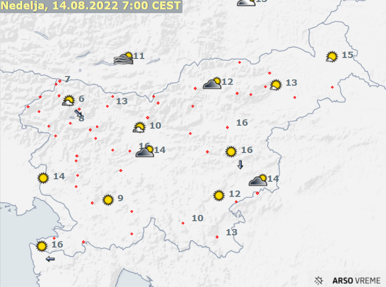 Po podatkih Agencije Republike Slovenije za okolje, bo danes pretežno jasno, zjutraj bo ponekod po nižinah kratkotrajna megla.