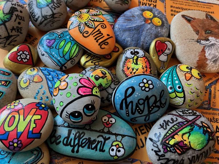 Tako so že leta 2014 z umetniško šolo Atilem pod mentorstvom Melite Ragolič pripravili kamenčke z dobrimi mislimi za bolnike z multiplo sklerozo.