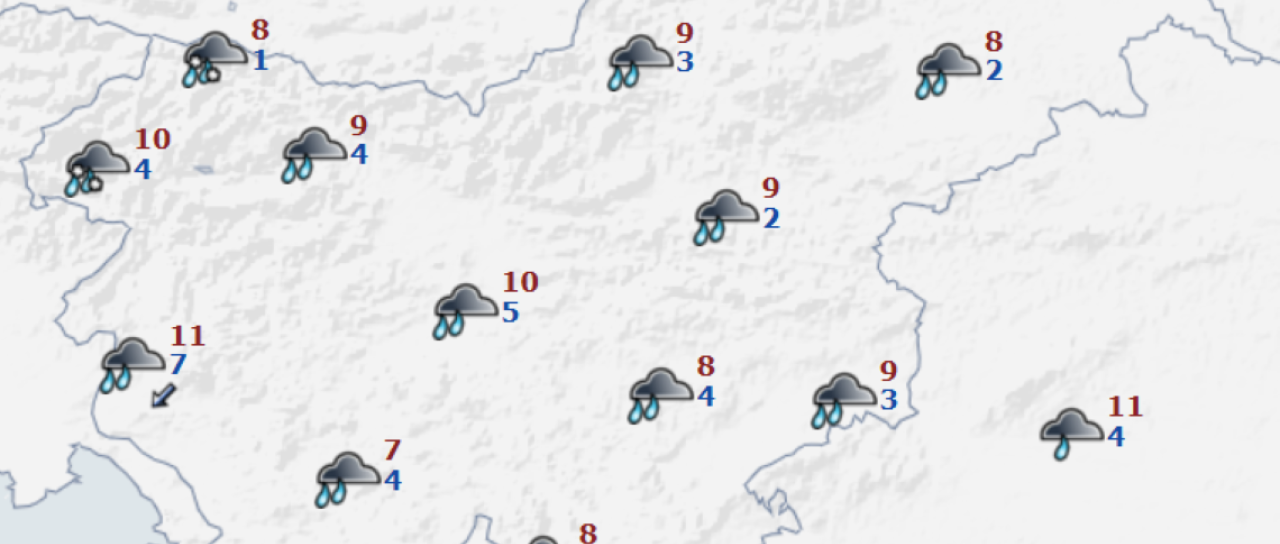 Še največ dežja je mogoče pričakovati v sredo. Temperature bodo zjutraj od 2 do 11 stopinj Celzija.