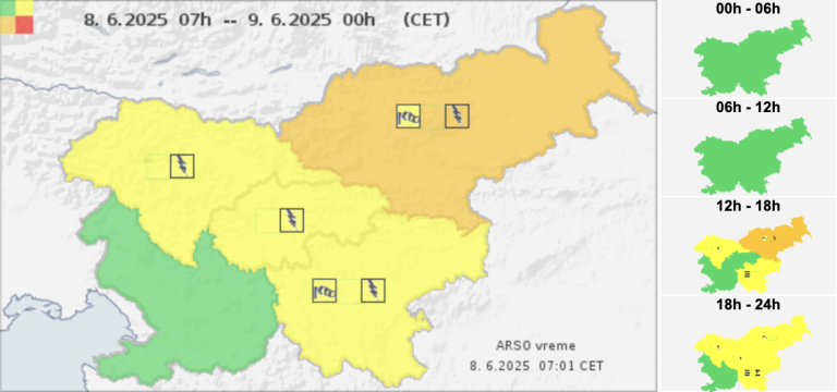 Zaradi vetra je sicer za danes popoldne in zvečer agencija za okolje izdala rumeno opozorilo za severovzhodni in jugovzhodni del države. V noči na ponedeljek in v ponedeljek dopoldne pa rumeno opozorilo zaradi vetra velja za jugozahodni del države.