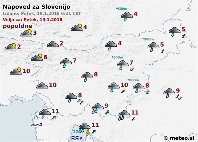 Sprva bo v južni Sloveniji še pihal jugozahodni veter, popoldne v večjem delu države severovzhodnik. Najvišje dnevne temperature bodo od 3 do 8 stopinj Celzija.