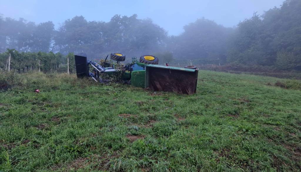 Okoli sedme ure zjutraj se je v vinogradu prevrnil traktor, s katerega je padel voznik in umrl.