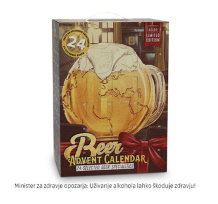 V tem adventnem koledarju dobite 24 vrst piva priznanih evropskih pivovarn, ki popestrijo vsak dan v adventnem času, 24 x 0,33 l,