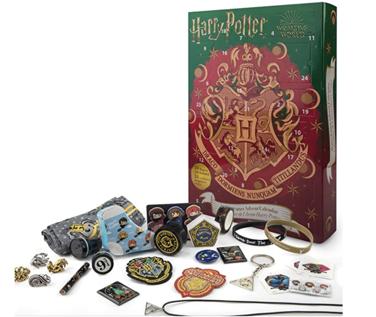 Pričakovanje božica bo z adventnim koledarjem Harry Potter Limited Edition še posebej čarobno. Adventni koledar vsebuje 24 daril z zanimivimi izdelki (čarobne nogavice, svinčnik, priponka za značke, grb, zapestnica, nalepke za telefone, zvitek, lepilni lističi, otroški žigi, priveski z verižico, magneti, bandana, obeski za ključe, zatiči, radirka, nalepke tatuji).