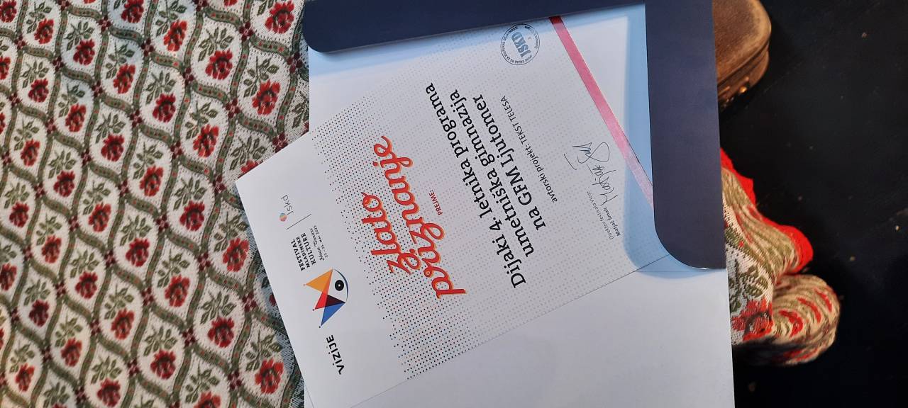 Predstava je bila nagrajena z državnim zlatim priznanjem Festivala Vizije.