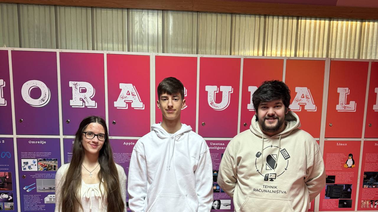 Dijak tretjega letnika Miha Božič je pod mentorstvom učitelja Dominika Letnarja osvojil prvo mesto v kategoriji izdelovanje spletnih aplikacij.
