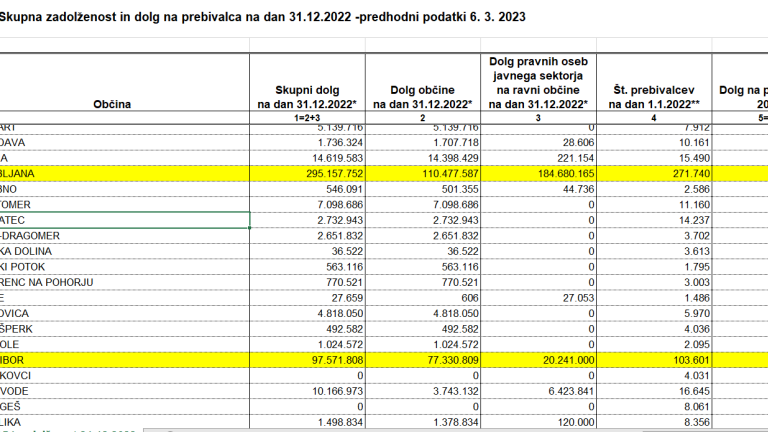 Izšlo je letno poročilo ministrstva za finance, ki razkriva podatke o tem, kako zadolžene so bile slovenske občine v letu 2022.