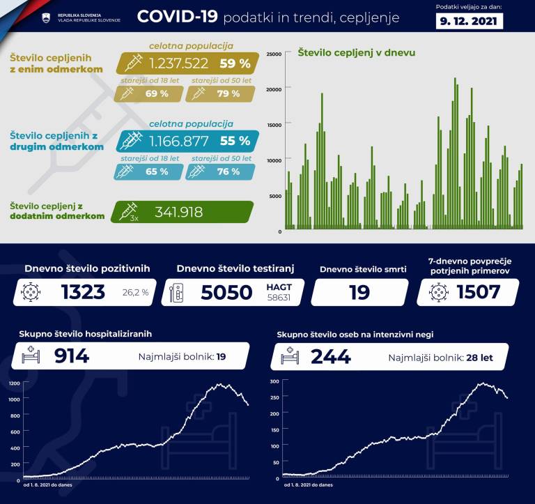Trenutno je po podatkih Covid-19 sledilnika v bolnišnicah hospitaliziranih 914 covidnih bolnikov, od tega je 244 pacientov na intenzivni negi.