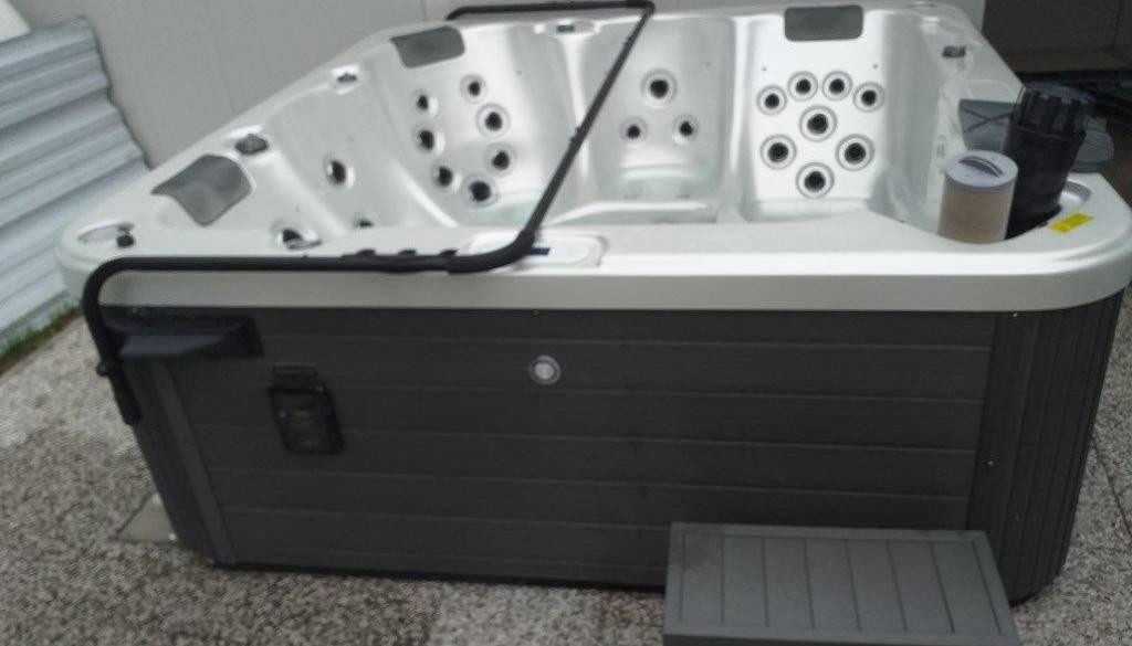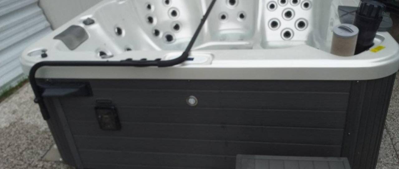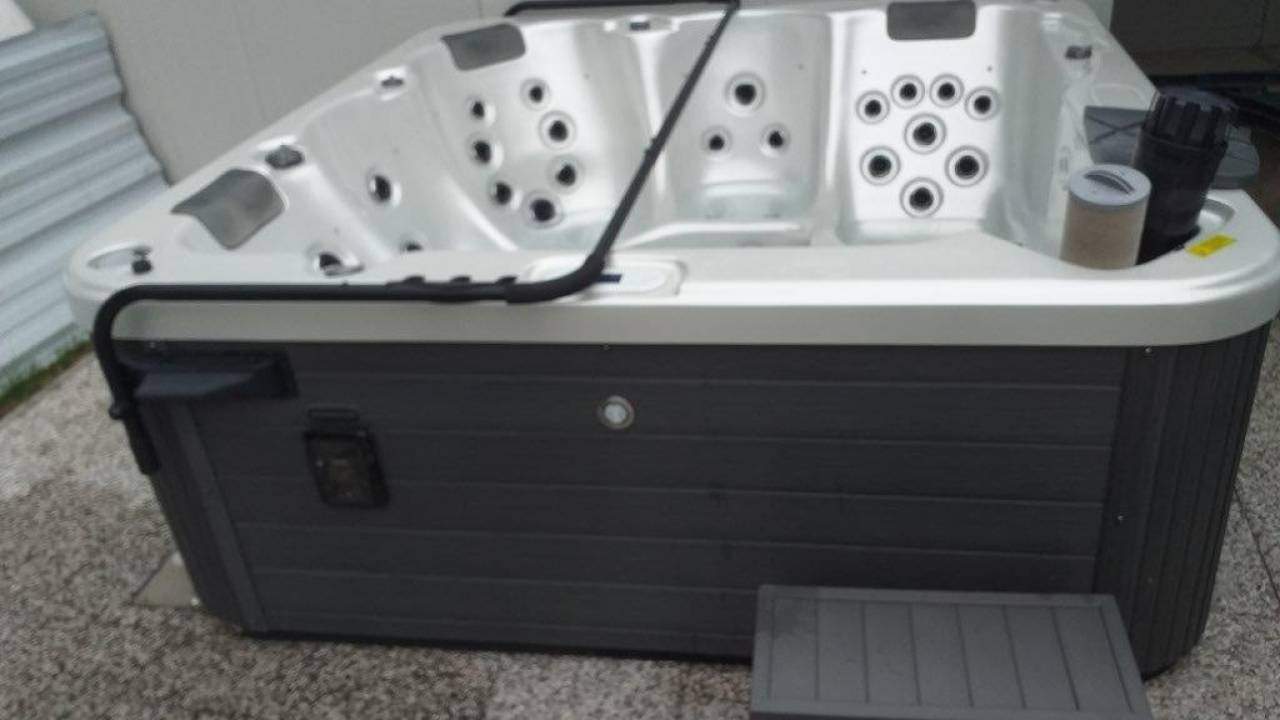 Masažni bazen Barbados Alba v sivi barvi se prodaja po principu videno - kupljeno. Ima pokrivalo, v kadi lahko uživa pet oseb, nastavijo si lahko temperaturo, za vzdušje pa poskrbi še večbarvna podvodna LED luč.