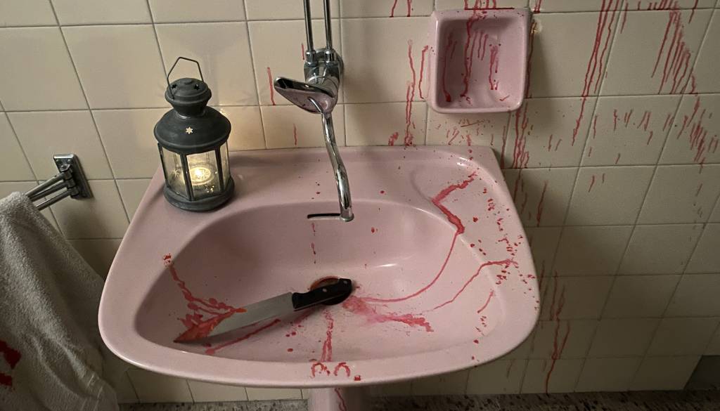 V Hišo groze vstopimo skozi prvo sobo, kjer nas pričaka temna kopalnica z grozljivim prizorom, znotraj katere gre za pretresljivo zgodbo o družinskem nasilju nad partnerko.