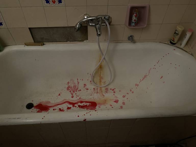 Iz okrvavljene kopalnice nas pot vodi le nekaj korakov naprej do bivalnih prostorov, kjer se skozi zgodbo Teje in Borisa soočimo še z enim scenarijem družinskega nasilja, katerega sta tokrat deležna tudi mladoletna otroka.