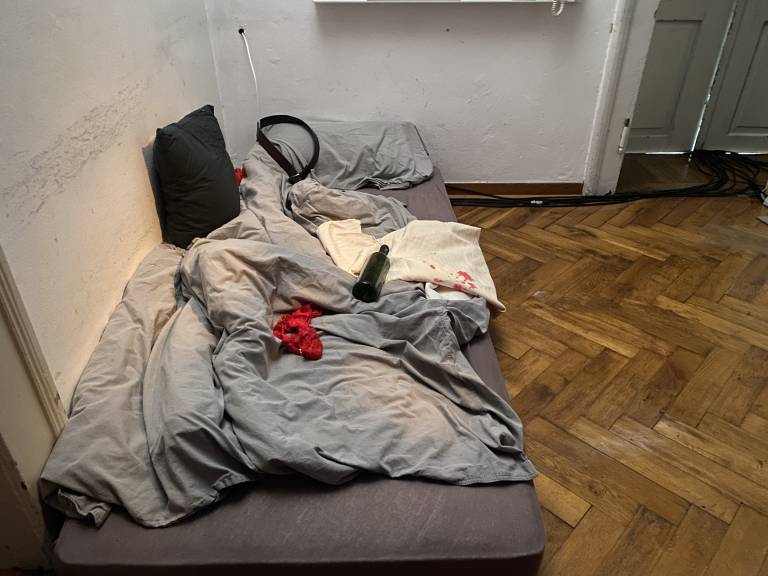Soba se navezuje še na naslednjo situacijo, v kateri vidimo razmetano in malenkost okrvavljeno posteljo, ki obiskovalcem sporoča, da se je na prvi pogled nedolžno nadlegovanje v nočnem klubu zaključilo z posilstvom.