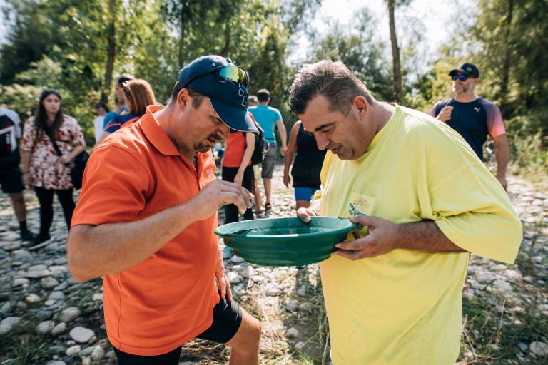Partnerstvo za Dravsko kolesarsko pot je z občino Starše že minulo soboto na kolesarskem izletu po trasi Dravske kolesarske poti izvedlo prikaz izpiranja zlata.