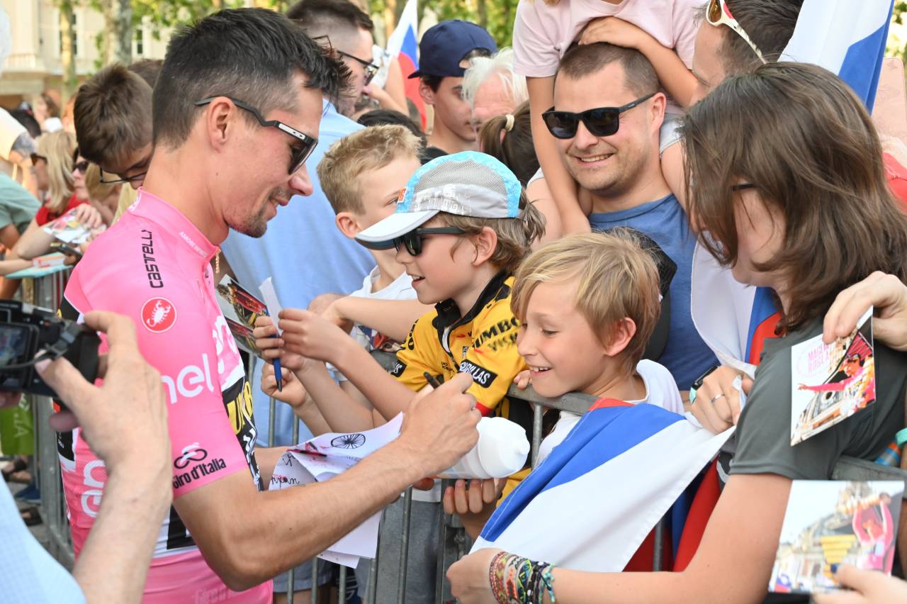 Po opravljenih novinarskih obveznostih se je Roglič odpravil na sprejem z navijači na Kongresnem trgu.
