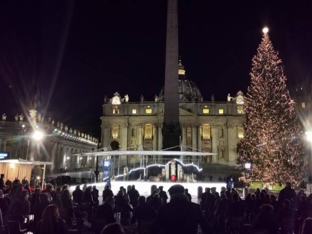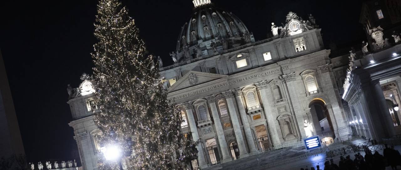 Na Trgu Svetega Petra v Vatikanu je včeraj zvečer zažarela božična smrečica iz slovenskih kočevskih gozdov.