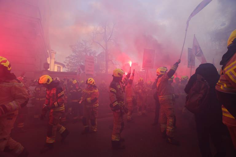 Poklicni gasilci so v prestolnici na shodu izrazili nezadovoljstvo s svojim položajem.