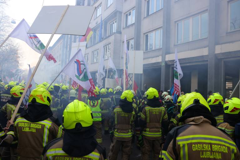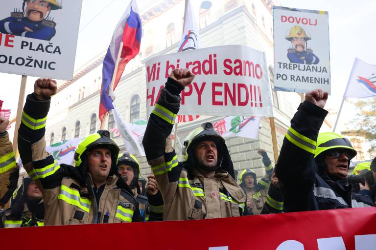 »Jezni smo na politične veljake, ki se že več kot leto in pol delajo norca iz nas. Zato smo se danes zbrali, ker imamo dovolj takega odnosa do nas. Zbrali smo se pred vlado, kjer so tisti, ki odločajo o naših usodah, odločajo o usodah javnih uslužbencev in gasilcev, da jim povemo, kar jim jim gre, v kakšnem položaju smo in da v takšnem položaju ne želimo več biti,« je dejal.