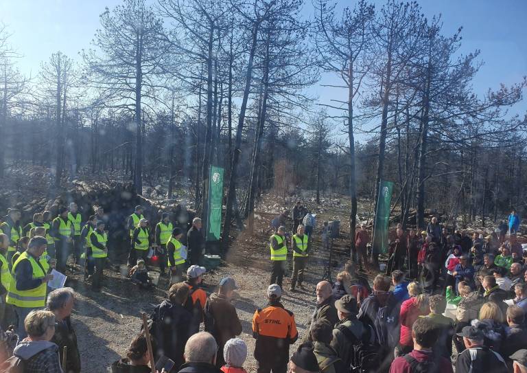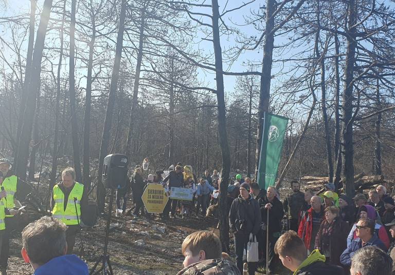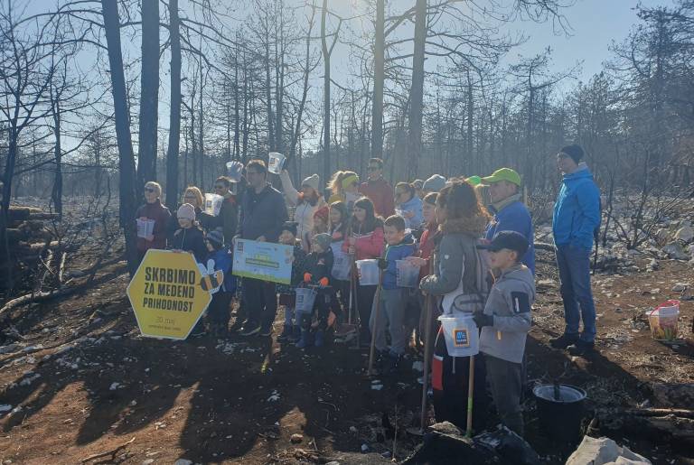 V okviru »Dan sajenja medovitih rastlin 2023« sta Čebelarska zveza Slovenije in Javna služba v čebelarstvu pod strokovnim vodstvom Zavoda za gozdove Slovenije v soboto, 4. marca, opravila akcijo obnove pogorelega Krasa.
