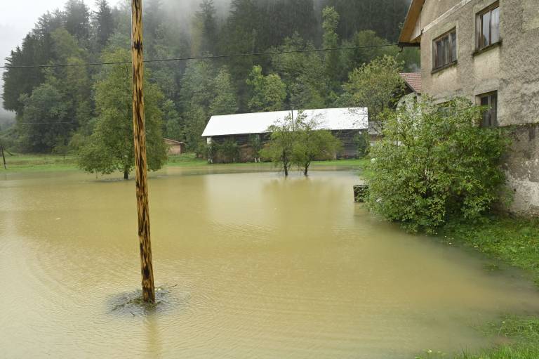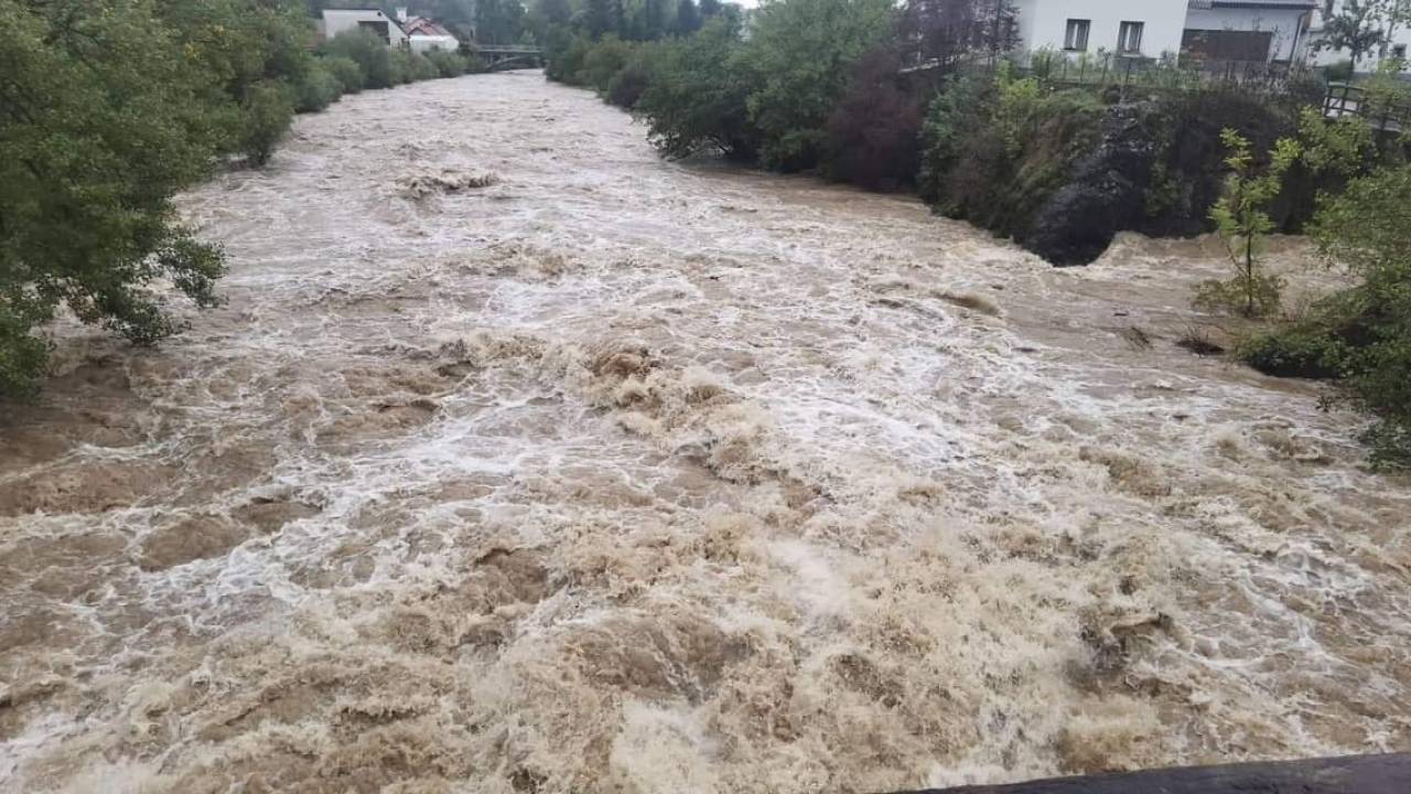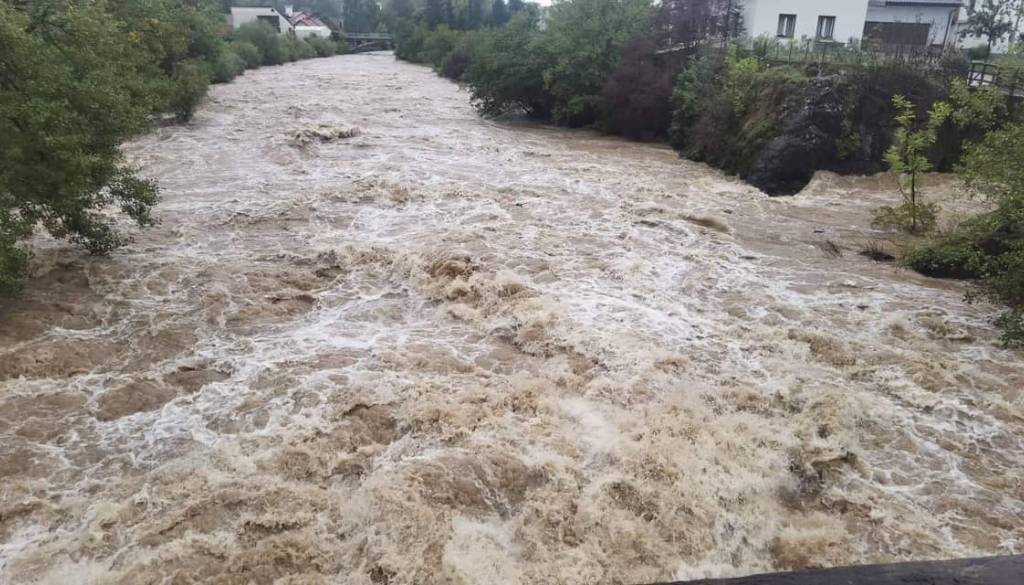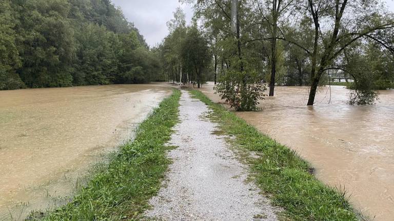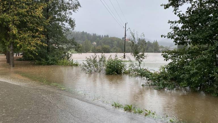 Čez bregove se je spustila reka Sora, voda je zajela Gorenjo vas, Ljubljanica pa se v blatni barvi približuje bregovom.