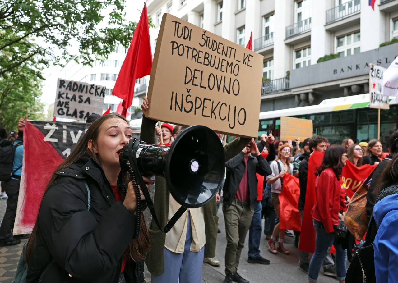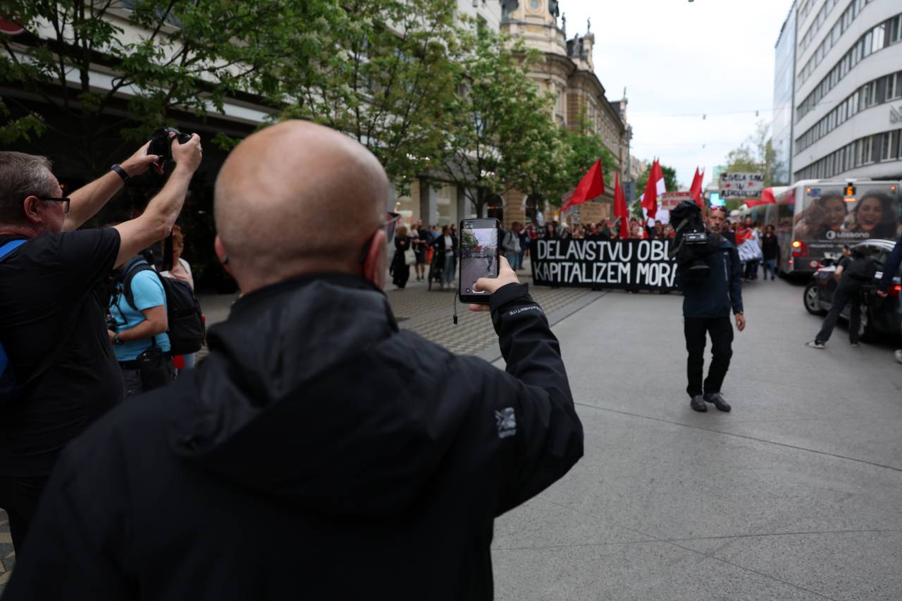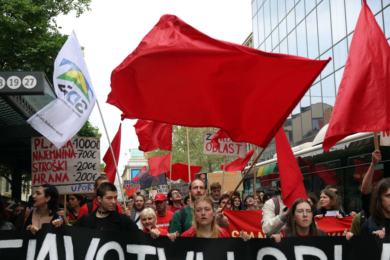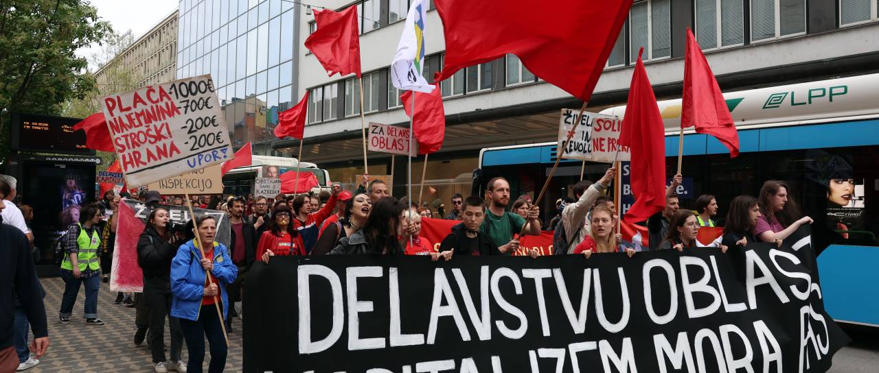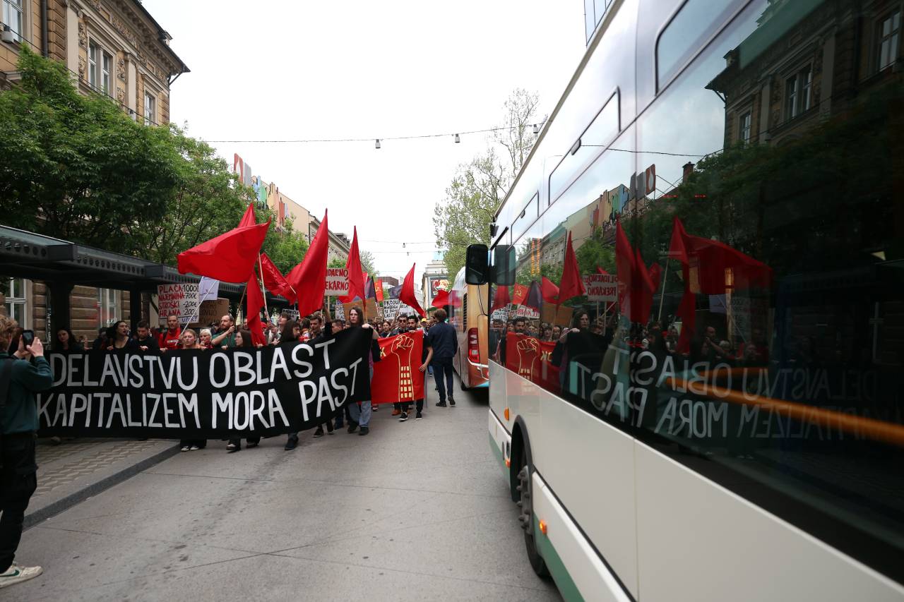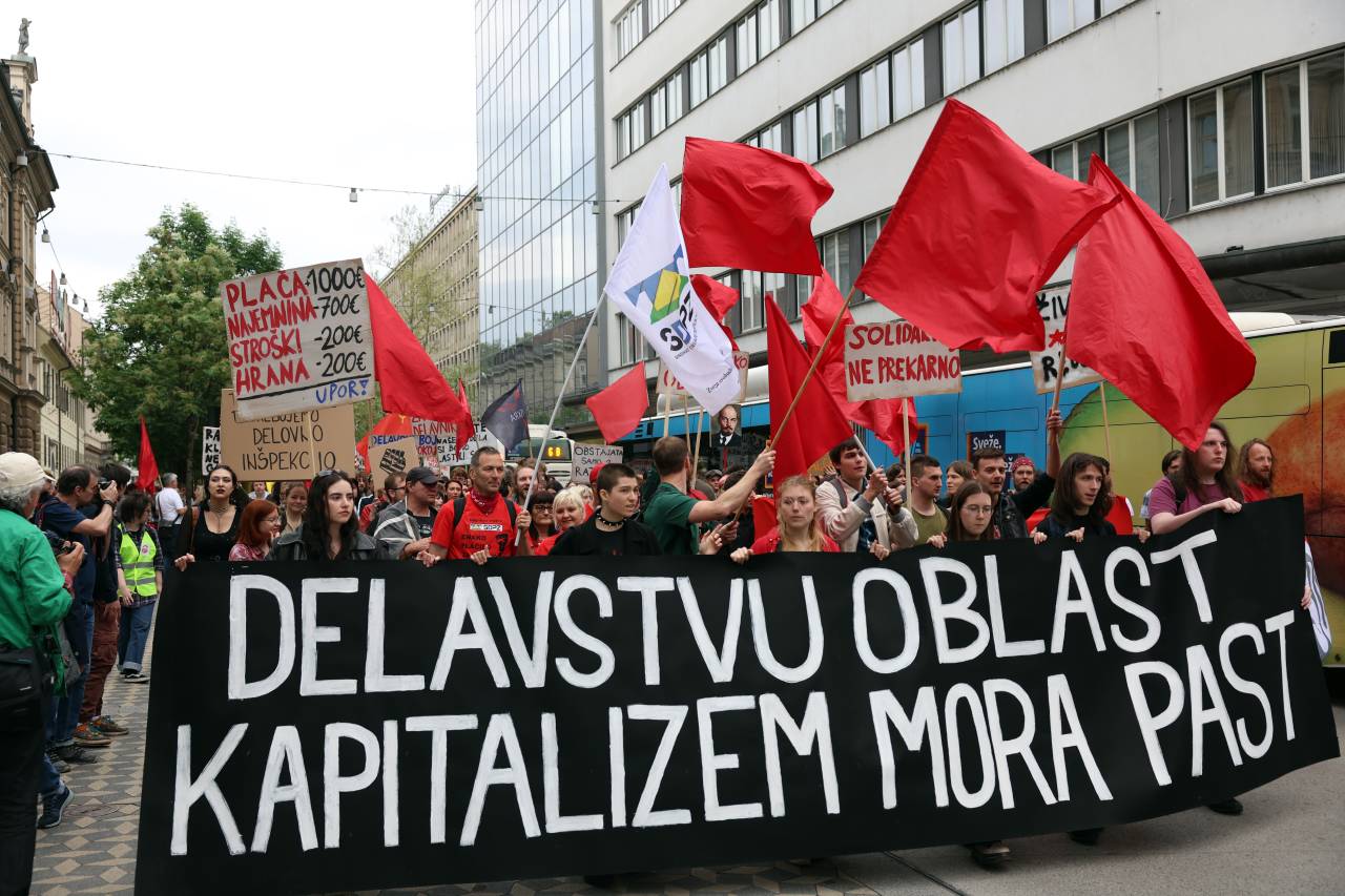 Na Kongresnem trgu v Ljubljani je bil danes delavski protest, ki so ga pripravili v sindikatih Mladi plus in Zasuk, društvu Iskra in Centru za družbeno raziskovanje - Cedra. Potekal je pod geslom Prvi maj delavstvu nazaj!