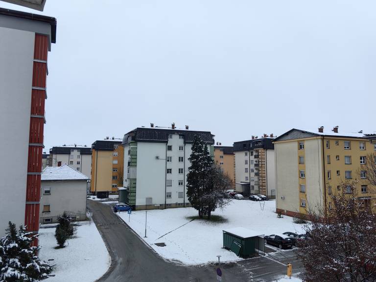 Lepo da je končno malo snega. Sicer ne bo dolgo ostal, ampak veselje otrok je bilo danes zjutraj nepopisljivo. Za kakšnega malega snežaka bo, dokler ne bo popoldne izginil. Naj se vsi varno peljejo, otroci pa uživajo.