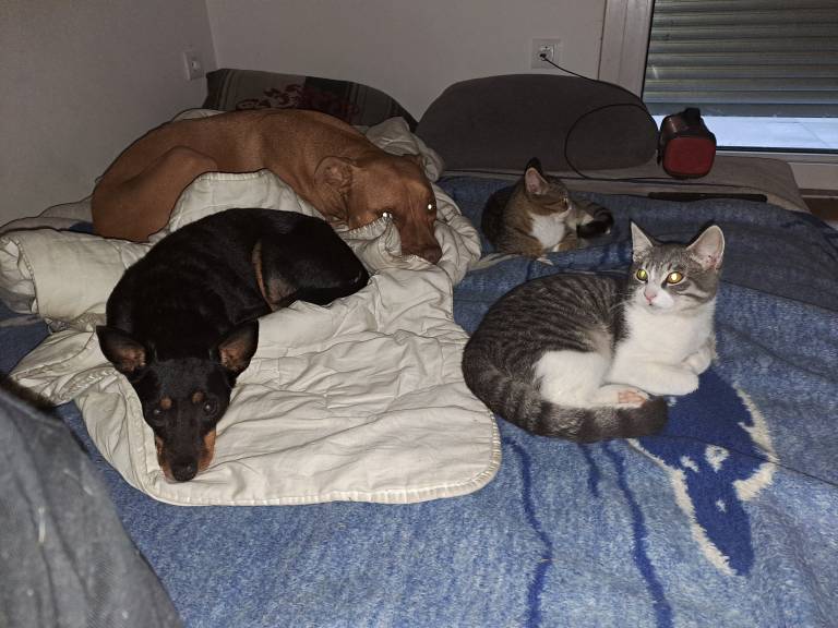 Pinč in pitbul sta mucka dobro sprejela, zanimali pa so nas tudi odzivi ljudi, ki naletijo na tak prizor, kot je opisana zasedba.
