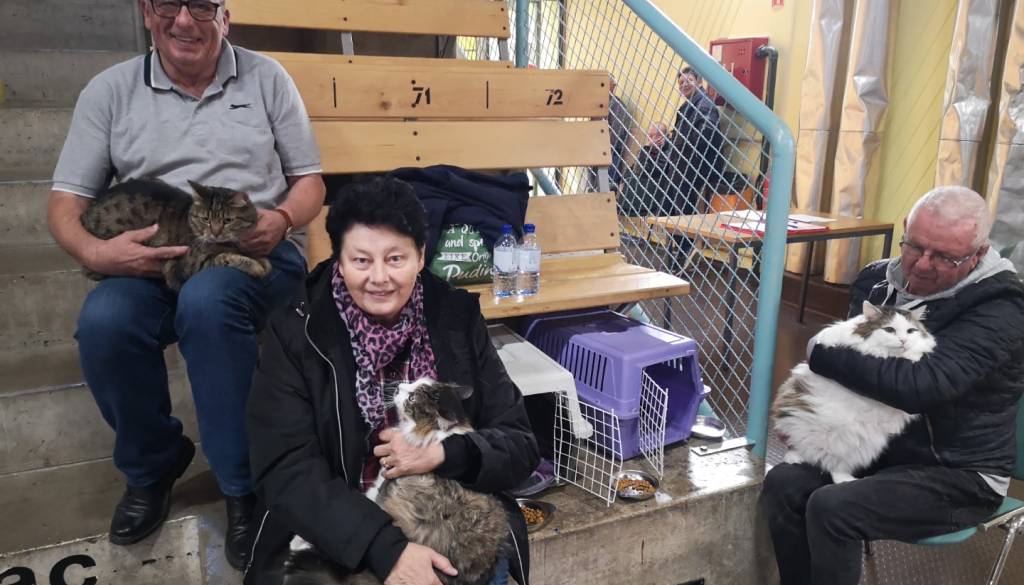 Gre za mačke stare 15, 9 in 5 let, od katerih se njuni lastniki niso mogli odreči: "Če ne bi smela vzeti s sabo moje mačke, bi ostala doma," nam je zuapala Kristina. V dvorani je po pričevanjih zelo dobro poskrbljeno za živali.