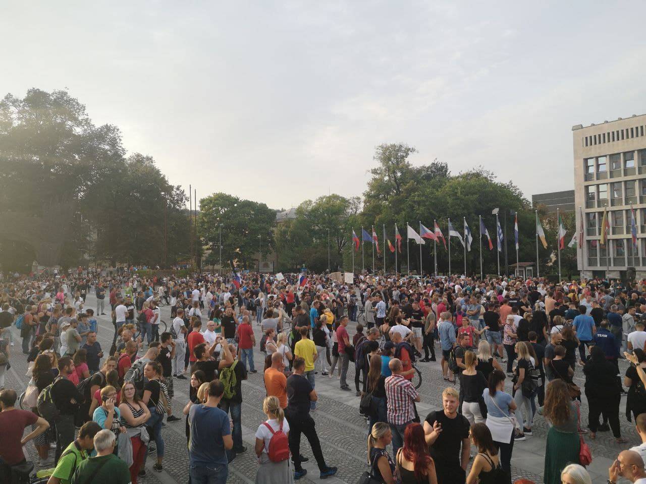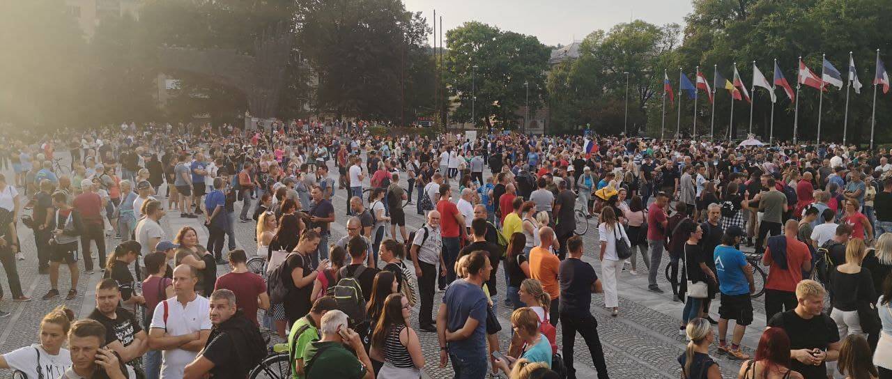 Pred parlamentom se je zbrala množica protestnikov. Zahtevali so predčasne volitve in spremembo covid ukrepov v priporočila. Doslednega nošenja mask in medsebojne razdalje ni opaziti, niti pri policistih.