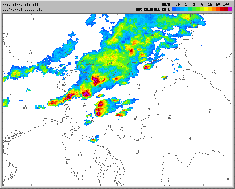 Nevihtno dogajanje se je iz Furlanije-Julijske Krajine preselilo nad severozahodni in osrednji del Slovenije. Močnejši nevihtni celici sta nastali na območju Cerknega in pri Radovljici