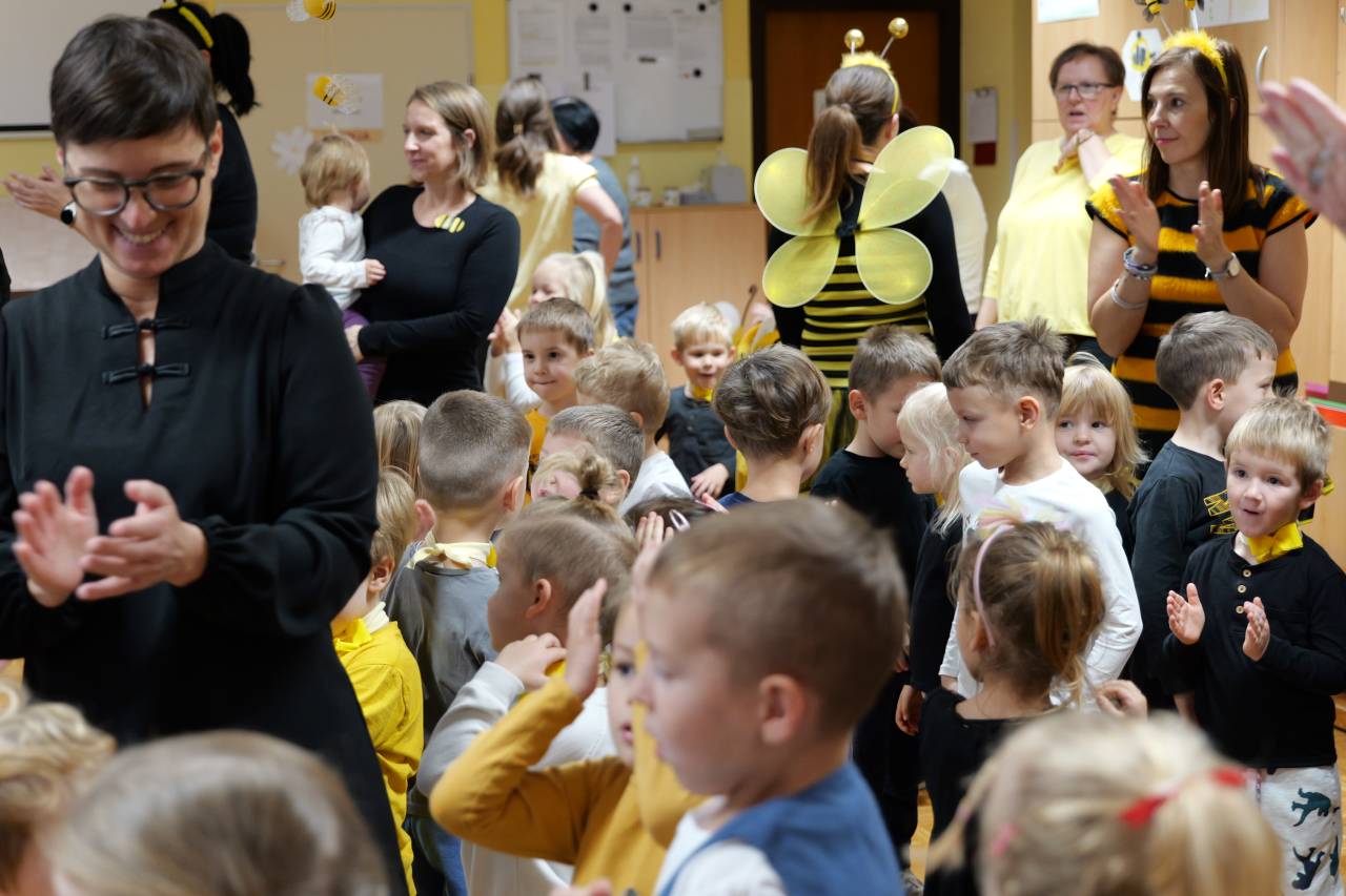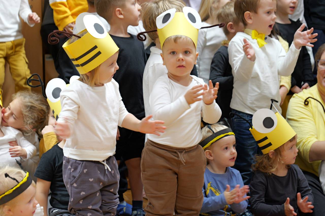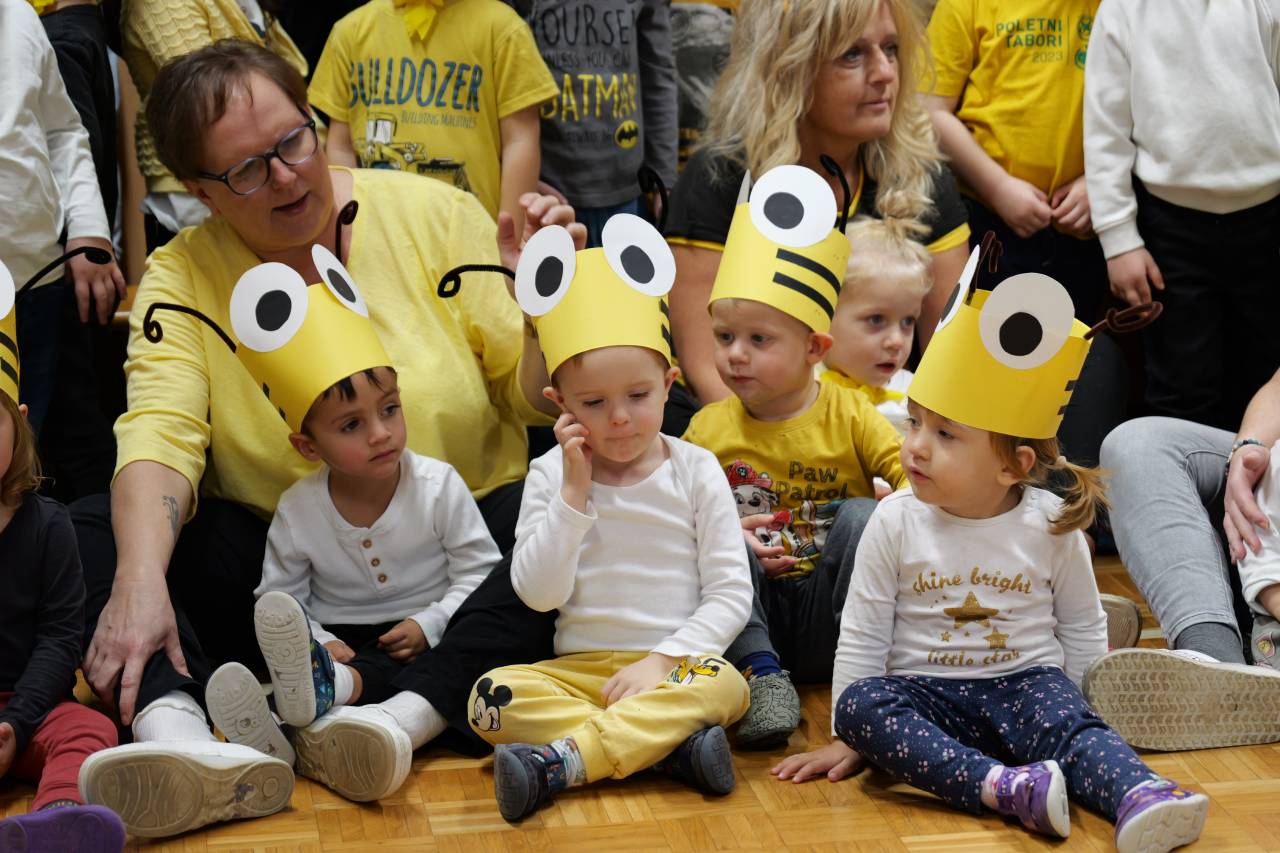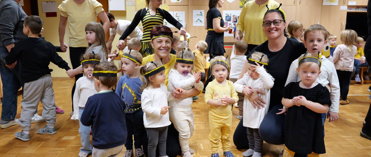 Otroci in vzgojiteljice so se pridružili vseslovenski pobudi petja pesmi Čebelar, ki jo vsako leto organizira Čebelarska zveza Slovenije.