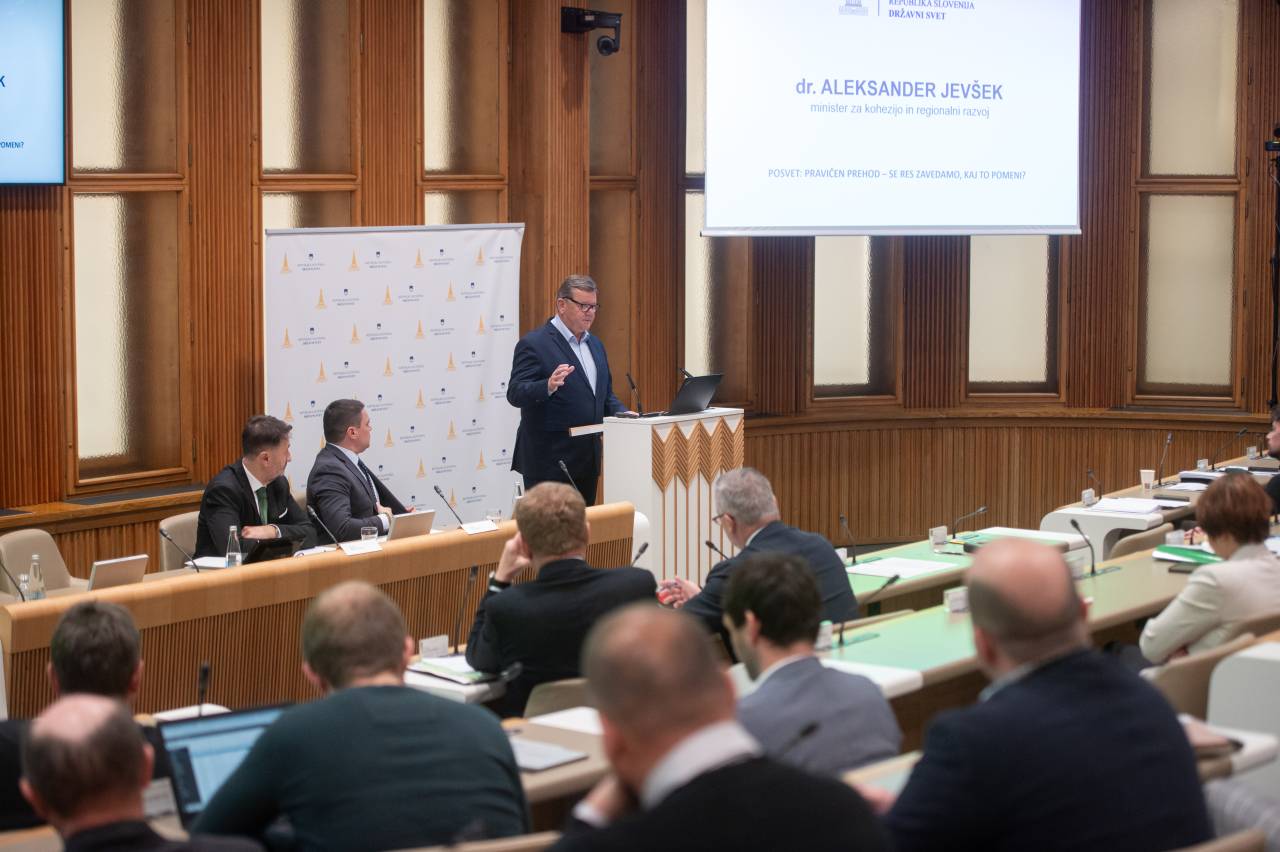 Nato je sledila predstavitev aktivnosti države za pravični prehod. Minister Aleksander Jevšek je pojasnil, da ministrstvo za kohezijo in regionalni razvoj pripravlja zakon o razvojnem prestrukturiranju SAŠA premogovne regije.
