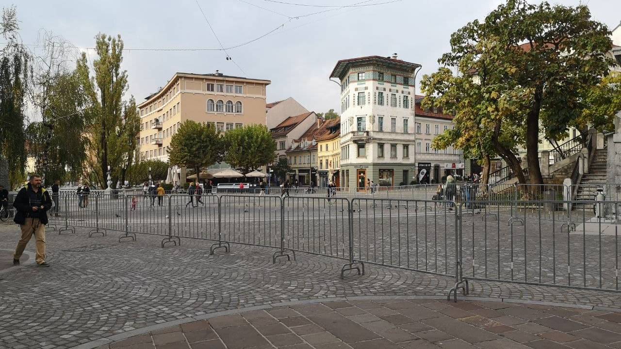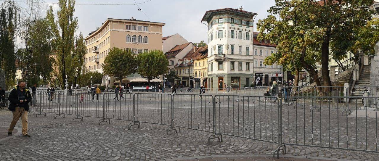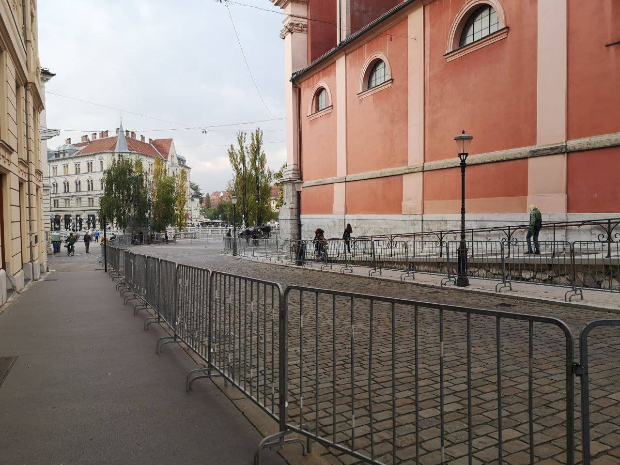 Protestniki bodo danes ob 15. uri zavzeli center Ljubljane, zjutraj pa so že bile na Prešernovem trgu in Trgu republike postavljene zaščitne ograje.