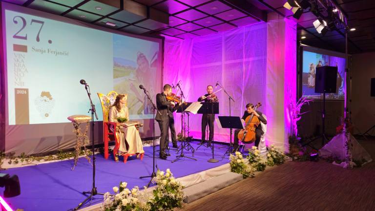 Posebna gostja večera, Sanja Ferjančič, dosedanja vinska kraljica Slovenije, se je s čustvenim nagovorom poslovila od svojega kraljevanja.
