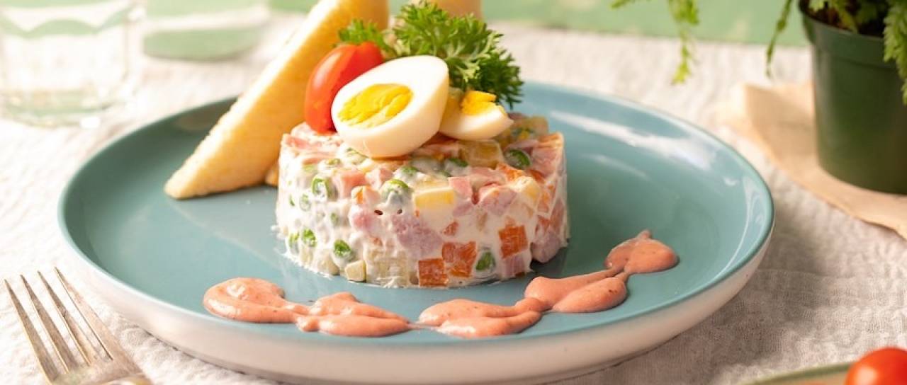 Za novo leto si mnogi radi privoščijo bogato zelenjavno-majonezno solato po imenu francoska solata.