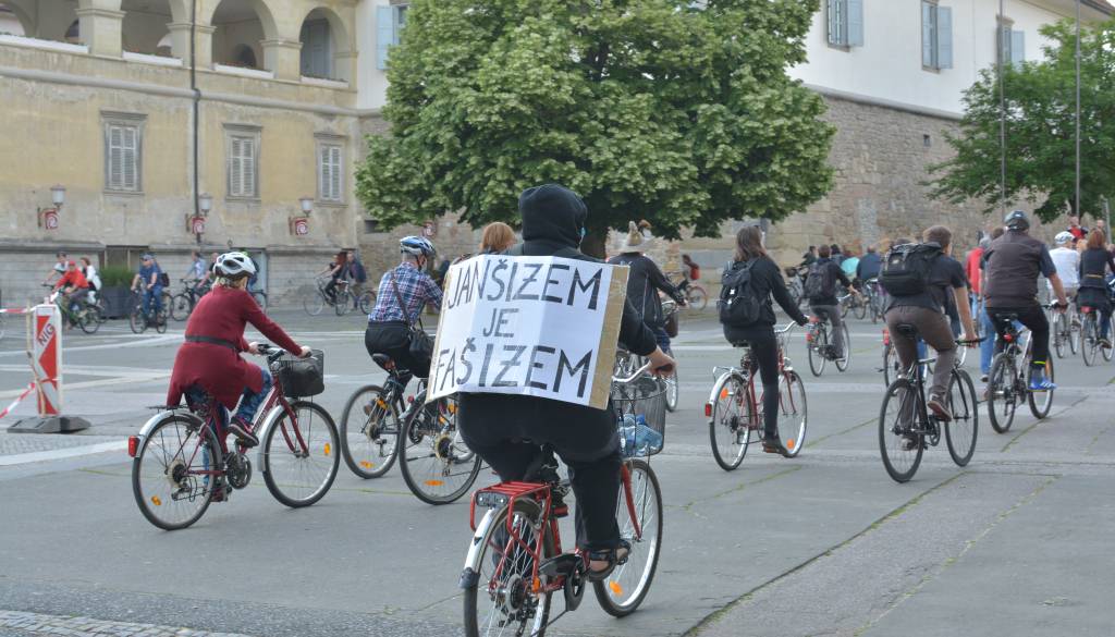 Protestniki, ki sicer že več petkov zapored izražajo nezadovoljstvo z vlado Janeza Janše, so v Ljubljani tokrat sestopili s koles. Na spletnih omrežjih so zaokrožili video posnetki petkovega dogajanja, ko so protestniki preskočili zaščitno ograjo, policija pa jih je prijela in odpeljala na policijsko postajo.