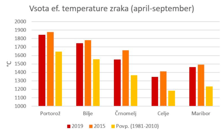 Vegetacijsko leto, ki je zajelo mesece od aprila do septembra, je bilo toplejše od dolgoletnega povprečja med leti 1981 in 2010. Večja od povprečja je bila tudi vsota efektivne temperature zraka nad 10 stopinj Celzija. V zadnjem desetletju so vremenske razmere sooblikovale številne vrhunske vinske letnike, 2013, 2015, 2016, 2017, 2018. Vse so zaznamovala nadpovprečno topla in skoraj praviloma tudi sušna poletja.