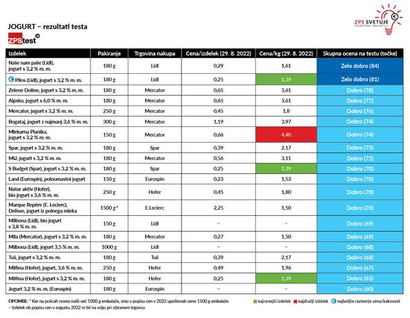 Spodaj je za ilustracijo predstavljen primer navadnega jogurta. Slovenci lahko izbiramo med kakovostnimi jogurti, saj sta na testu navadnega jogurta dva izdelka prejela oceno zelo dobro, preostalih 18 pa oceno dobro.