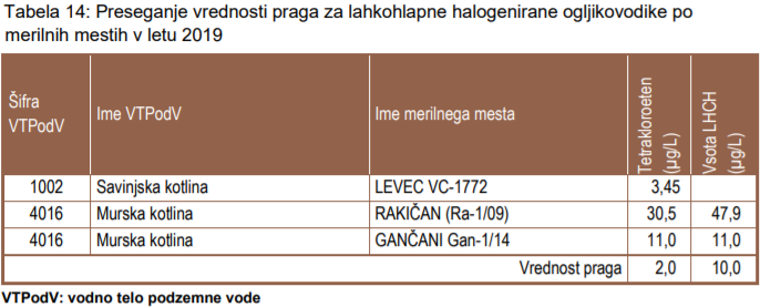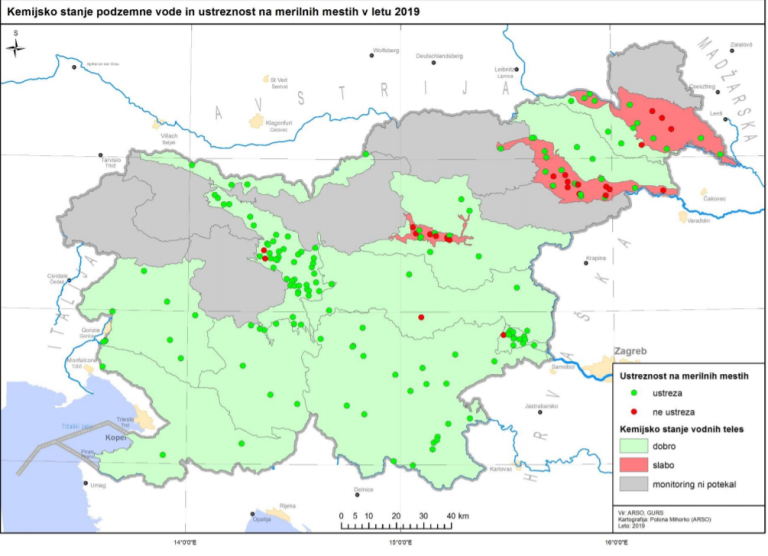 V severovzhodnem delu Slovenije pa je ARSO v letu 2019 določil slabo kemijsko stanje za vodna telesa Savinjske, Dravske in Murske kotline.