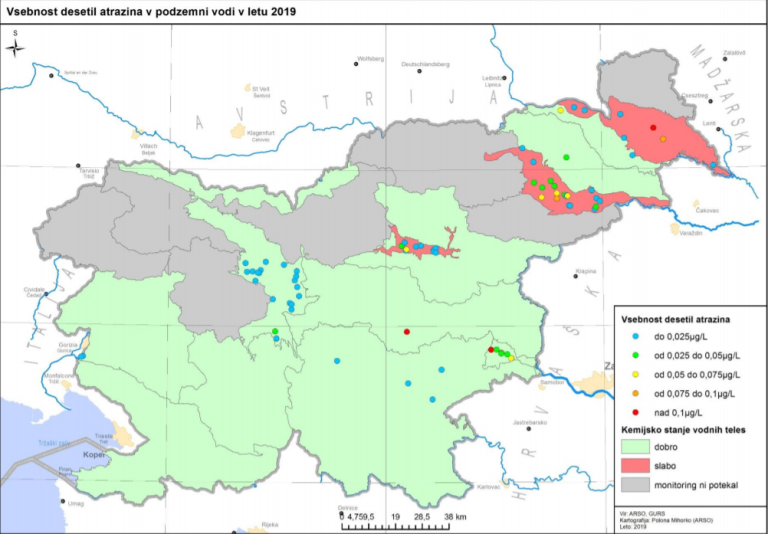 Vsebnost pesticidov je Arso spremljal na 76 merilnih mestih, saj jih spremljajo na mestih, kjer presegajo standard kakovosti in tam, kjer so bili standardi preseženi v preteklosti.