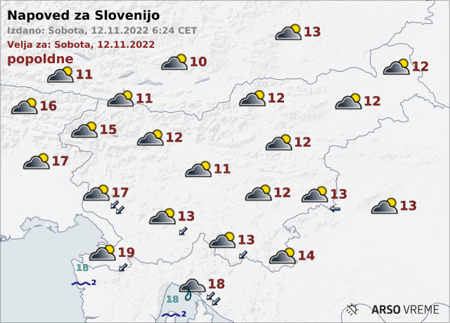 Dopoldne bo po nižinah še megla, ki se ponekod lahko zadrži večji del dneva. Na Primorskem bo pihala šibka burja, ki se bo popoldne nekoliko okrepila.