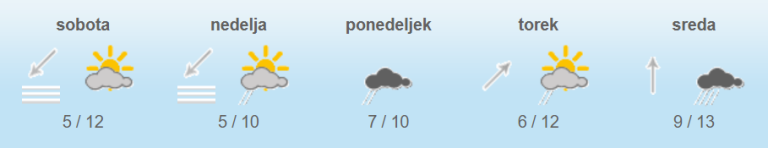 Jutranje temperature bodo od 0 do 6, na Primorskem okoli 9, najvišje dnevne od 8 do 12, na Primorskem do 17 stopinj Celzija.