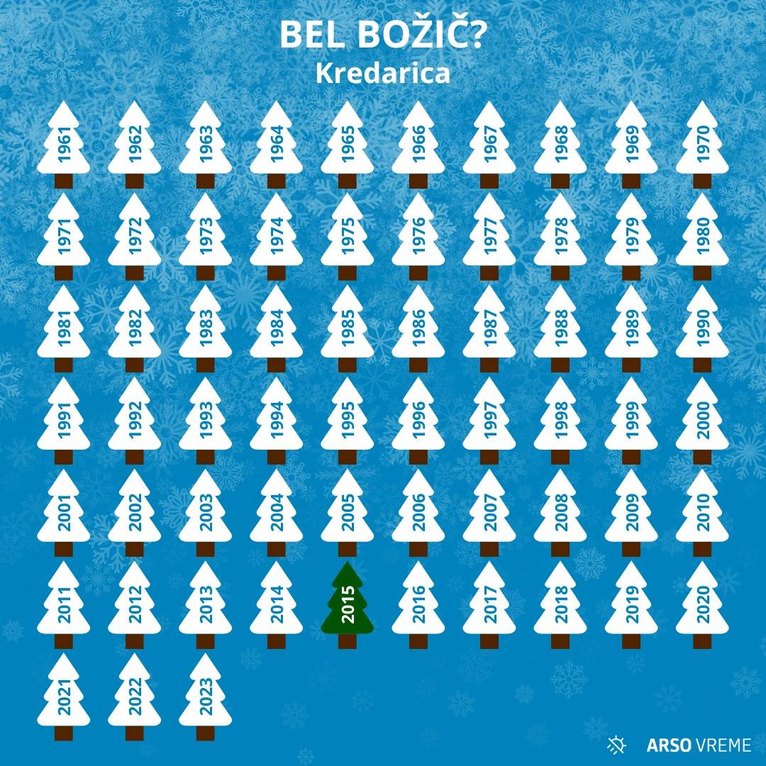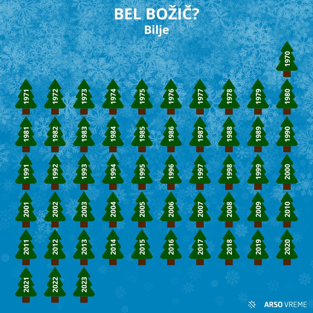 Vremenoslovci agencije za okolje so pripravili pregled »zelenih« in »belih« božičev v Biljah, Ratečah, Slovenj Gradcu, Mariboru, Murski Soboti, Celju, Novem mestu, Ljubljani, Kredarici in Slovenski Istri.