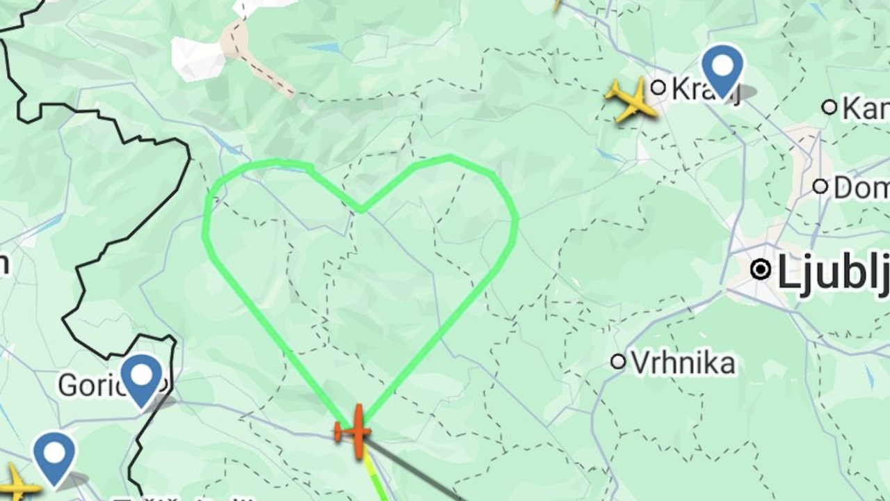 Uporabniki aplikacije Flightradar24 so opazili nekaj prav posebnega - letalo je med letom nad Slovenijo na nebu izrisalo obliko srca, kar je marsikomu polepšalo dan.