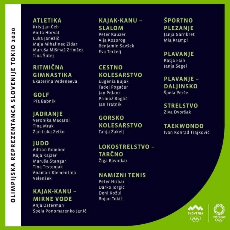 Iz prestolnice bodo barve Slovenije branili tenisač Aljaž Bedene, strelka Živa Dvoršak, atletinji Tina Šutej in Anita Horvat, judoistka Maruša Štangar in Golfistka Pia Babnik.