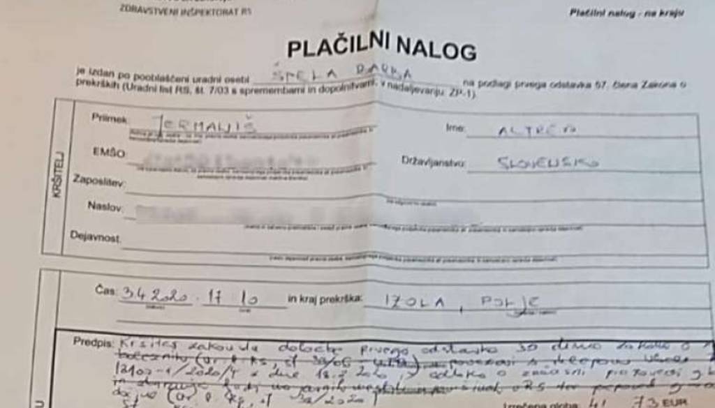 V Sloveniji se v tem času lahko gibamo samo znotraj svoje občine. Izjema so tisti, ki imajo za to potrebna potrdila. Slednjih pa ni imel nekdanji nogometaš Mure, ki je tako moral plačati kazen.