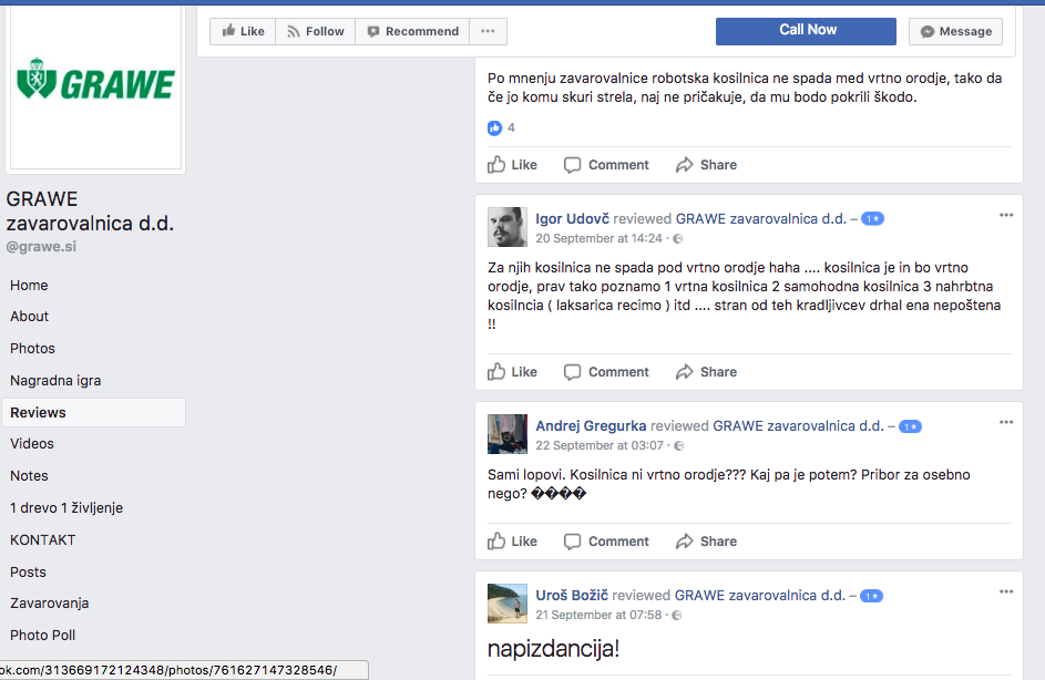 Njegov zapis je v nekaj dneh zbral več kot 650 všečkov, 140 komentarjev, delilo pa ga je več kot 2100 uporabnikov. Še več. Na Facebook strani GRAWE zavarovalnica d.d. je več uporabnikov zavarovalnici dalo najslabšo možno oceno, nekateri so pustili tudi komentarje, v katerem izražajo svoje nezadovoljstvo. Kakorkoli že, zavarovalnica si je s takim izmikanjem povračilu nastale škode ustvarila izjemno protireklamo, s tem pa zagotovo tudi škodo, ki je občutno višja od zneska, ki bi bi ga izplačala, če bi ugodila škodnemu zahtevku.